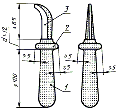 1 - изолированная ручка (или рукоятка); 2 - предохранительный упор; 3 - рабочая головка (неизолированная); d - расстояние между нижней частью предохранительного упора и неизолированной частью инструмента