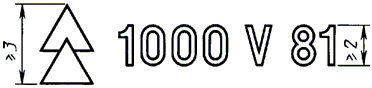 - символ с указанием наибольшего рабочего напряжения: 1000 В; высота символа должна быть не менее 3 мм, высота букв и цифр - не менее 2 мм (см. рисунок 3);