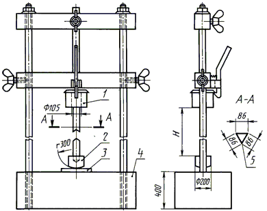 Высоту падения молотка H определяют в зависимости от его массы P, исходя из того, что энергия удара W по инструменту равна силе удара при падении этого инструмента с высоты 0,60 м на твердую поверхность