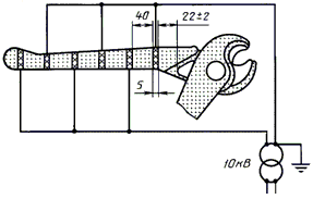 5.6.2.2 [4.8.2.2]. Плоскогубцы, круглогубцы, кусачки, предназначенные специально для работ под напряжением, подвергают следующим испытаниям.