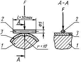 Испытание должно быть проведено по одному из двух вариантов, изображенных на рисунках 4 а, б. Молоток должен иметь минимальную твердость .