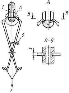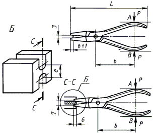 Рукоятки инструмента должны удерживаться между точками A и B на расстоянии b силой P, равной силе F, прикладываемой при испытании на изгиб.