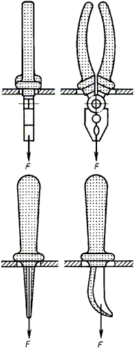 Силу F (в ньютонах), равную 35-кратному диаметру стержня отвертки или ее поперечному сечению в самом широком месте, выраженному в миллиметрах, прикладывают вдоль оси стержня в течение 1 мин.