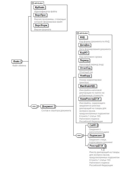 | Реестр деклараций на товары для экспресс-грузов, предусмотренных подпунктом 8 пункта 1 статьи 165 Налогового кодекса Российской Федерации | РеестрДТЭГ | С | ОМ | Состав элемента представлен в таблице 5.3 |