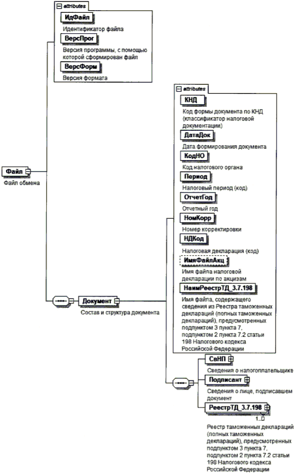 | Имя файла налоговой декларации по акцизам | ИмяФайлАкц | А | T(1-255) | Н | Содержит имя файла (без расширения) ранее представленной налоговой декларации по акцизам, к которой представляется реестр |