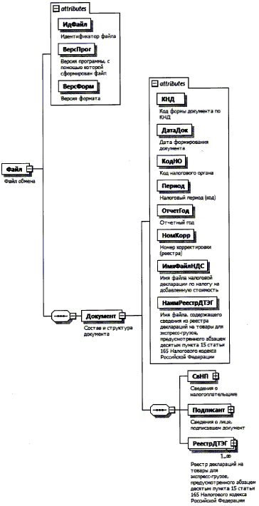 | Реестр деклараций на товары для экспресс-грузов, предусмотренных абзацем десятым пункта 15 статьи 165 Налогового кодекса Российской Федерации | РеестрДТЭГ | С | ОМ | Состав элемента представлен в таблице 3.9 |