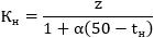 z - величина, выбираемая в зависимости от температурного коэффициента объемного расширения, приведена в табл. 4.