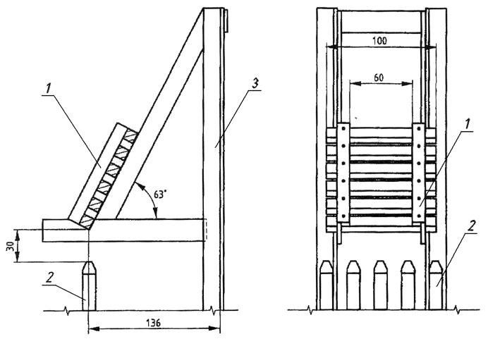 Деревянный штабель (см. Приложение Б, рисунок Б.1) должен состоять из восьми деревянных брусков размерами 10 x 10 x 100 мм, не содержащих сколов и включений, с относительной влажностью не более 15%. Шесть брусков, расположенных через 8 мм, скреплены механически двумя брусками с помощью металлических соединений (гвозди или скрепки). Размеры штабеля составляют 100 x 100 мм, высота - 20 мм.