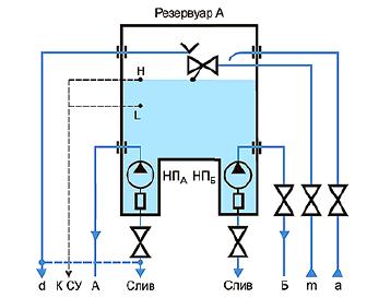 a, m - трубопроводы для заполнения и пополнения водой пожарных резервуаров (используется вариант "a" или "m");