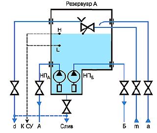 | - линия передачи управления об объеме пожарного запаса воды в резервуаре |