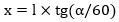 - светильники, направленные на проезжую часть и правый тротуар соответственно; l - полосы газона; "x" - расчетные точки на расчетном поле