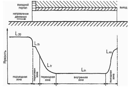 3.10 въездная зона тоннеля: Участок тоннеля, включающий в себя пороговую и переходную зоны.