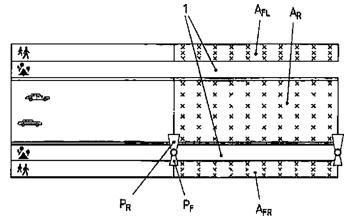 - элементы расчетного поля: проезжая часть, левый и правый тротуары улицы соответственно;