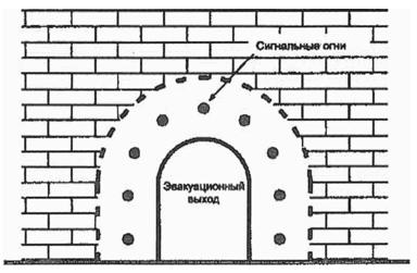 Пример расположения сигнальных огней относительно эвакуационного выхода показан на рисунке П.1.