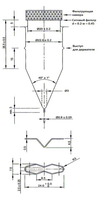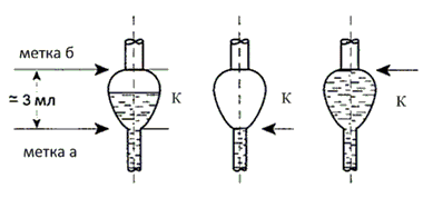 Количество вещества взвешивают или отмеряют в соответствии с указанной степенью точности. Точность взвешивания должна составлять +/- 5 единиц после последней указанной в фармакопейной статье цифры (например, навеска 0,25 г должна быть взята в пределах от 0,245 г до 0,255 г). Объемы отмеривают следующим образом. Если после десятичной запятой стоит 0 или число, заканчивающееся 0 (например, 10,0 мл или 0,50 мл), требуемый объем отмеряют с помощью пипетки, мерной колбы или бюретки. В остальных случаях можно использовать градуированный мерный цилиндр или градуированную пипетку, Объем жидкости, выраженный в микролитрах, отмеряют с помощью микропипетки или микрошприца.