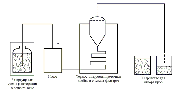 При использовании прибора с проточной ячейкой скорость потока среды растворения обычно находится в диапазоне от 4 мл/мин до 50 мл/мин.