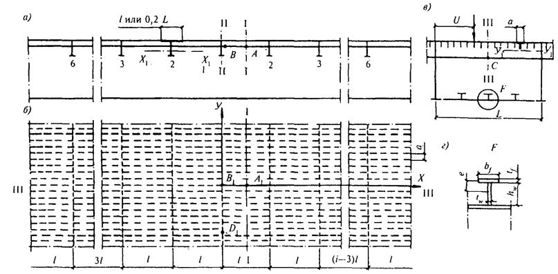 д) выход из строя одного из элементов решетки сквозного пролетного строения (усилия от временных нагрузок принимают с коэффициентом 0,5).