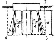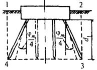 где - нормальная составляющая давления условного фундамента на грунт основания, кН, определяемая с учетом веса грунтового массива 1-2-3-4 вместе с заключенными в нем ростверком и сваями или опускным колодцем;