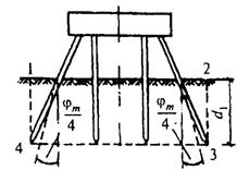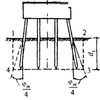 Рисунок 3.2. Условный свайный фундамент с ростверком, заглубленным в грунт, при угле наклона свай более /4