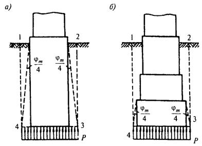 Несущую способность основания условного фундамента проверяют согласно 11.8, при этом подлежащие проверке среднее p, кПа, и максимальное , кПа, давления на грунт в сечении 3-4 по подошве условного фундамента (рисунки 3.1 - 3.5) следует определять по формулам: