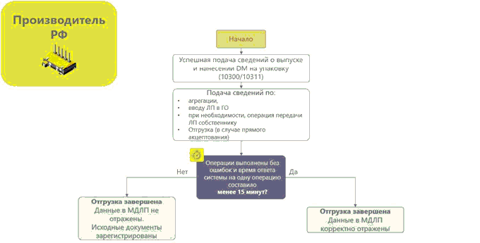 a. До 1 февраля 2021 в случае отсутствия ответа при приемке документа или информации об успешном завершении операции в квитанции за период, превышающий 15 минут от попытки отправки документа в систему ФГИС МДЛП, допускается дальнейшее совершение операций с лекарственным препаратом без повторной отправки сведений.