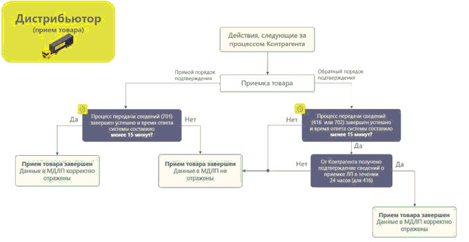 При возникновении проблем у субъектов обращения лекарственных средств с процессом оборота маркированных лекарственных препаратов на место осуществление деятельности для медицинских организаций и аптечных организаций, осуществляющих отпуск ЛП (за исключением лекарственных препаратов, включенных в перечень 12ВЗН), реализован упрощенный процесс, не требующий подтверждения от контрагента.
