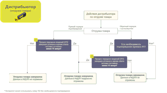 Схема упрощенного обратного акцептования может применяться субъектами обращения в случае, если субъект обращения лекарственного препарата по каким-либо причинам не передал в ИС МДЛП сведения о приемке/отгрузке ЛП или акцепте сведений об обороте маркированного лекарственного препарата, или по техническим/иным причинам указанные сведения не были зарегистрированы в МДЛП, либо по решению субъекта обращения.