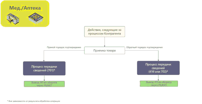 7. В случае получения квитанции с информацией об успешном завершении операции 702 по результату выполнения п. 6 приемка ЛП со стороны медицинской\аптечной организации завершена.