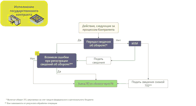 В случае возникновения затруднений при подаче сведений, фиксирующих передачу лекарственных препаратов от производителя к импортеру в процессе иностранного производства, применяется упрощенная схема 703, позволяющая в одностороннем порядке перевести лекарственные препараты на статус "Ввезен на территорию РФ".