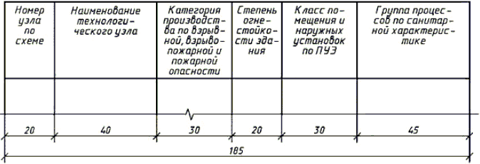 К схеме приводят ведомость технологических узлов по форме 1, графы которой заполняют в соответствии с их наименованием.
