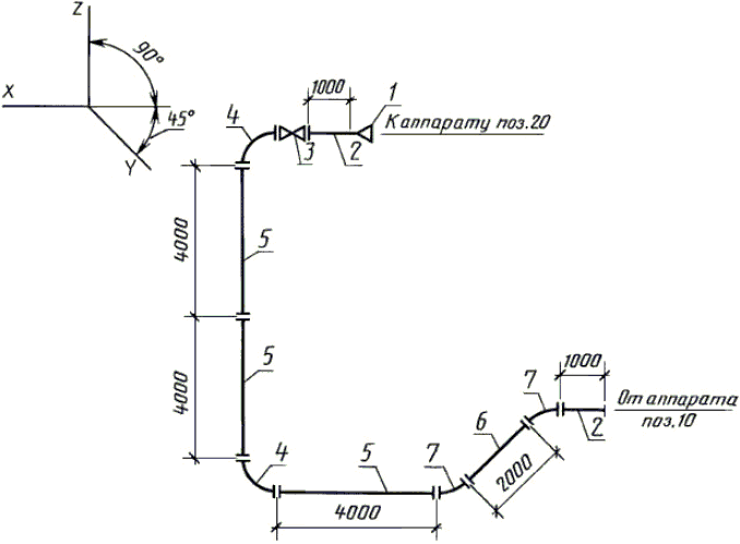 Специальный технологический трубопровод изображают во фронтальной диметрической проекции по ГОСТ 2.317-69.