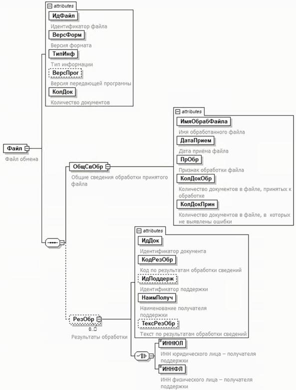 XML схема файла обмена приводится отдельным файлом и размещается на официальном сайте Федеральной налоговой службы.