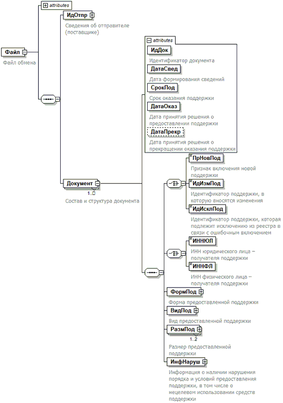 1. Настоящий формат описывает требования к XML файлам (далее - файл обмена) передачи сведений в электронной форме в ФНС России федеральными органами исполнительной власти, органами исполнительной власти субъектов Российской Федерации, органами местного самоуправления, корпорацией развития малого и среднего предпринимательства, ее дочерними обществами, организациями, образующими инфраструктуру поддержки субъектов малого и среднего предпринимательства (далее - поставщики), с целью формирования Единого реестра субъектов малого и среднего предпринимательства - получателей поддержки (далее - реестр).