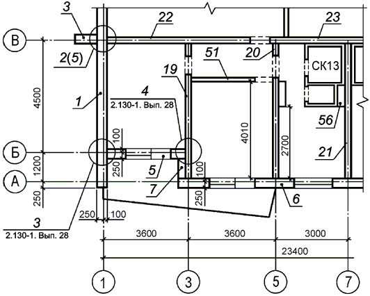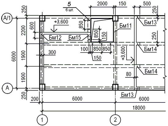 4.8 В рабочих чертежах (на изображениях фундаментов, стен, перегородок, перекрытий) указывают проемы, борозды, ниши, гнезда и отверстия с необходимыми размерами и привязками.