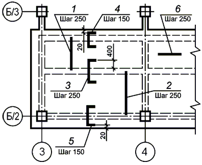 Рисунок Л.6 - Схема расположения колонн, ригелей и балок перекрытия на отм. ...