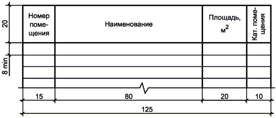 - в графе "Кат. помещения" - категорию помещения по взрывопожарной и пожарной опасности. Категорию указывают для всех типов помещений производственных зданий и помещений общественных зданий, в которых предусмотрено нахождение горючих веществ и материалов.