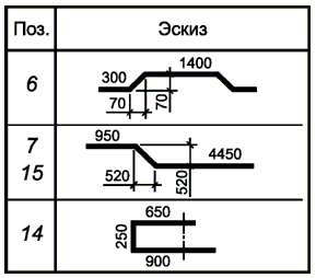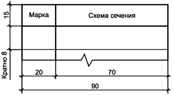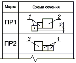 - в графе "Схема сечения" - схематическое изображение сечения перемычки. Схема сечения может быть дополнена отметками низа перемычек и ориентацией расположения перемычек по отношению к координационным осям.