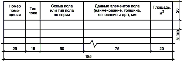 - в графе "Данные элементов пола (наименование, толщина, основание и др.), мм" - при применении типовой конструкции пола приводят только дополнительные данные.