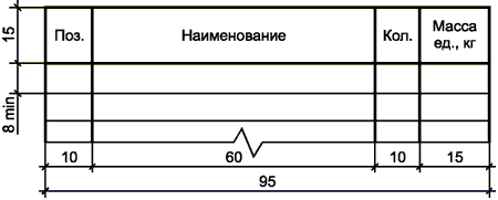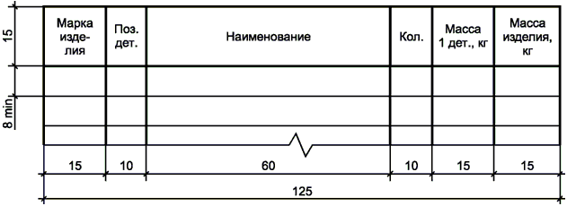 Для записи ряда деталей, отличающихся размерами и другими данными, общую часть наименования этих изделий или материалов с обозначением указанного документа допускается записывать на каждом листе спецификации один раз в виде общего наименования (заголовка). Под общим наименованием записывают для каждого из указанных изделий и материалов только их параметры и размеры;