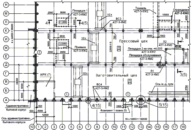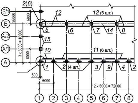 Рисунок Л.2 - Схема расположения колонн и подкрановых балок