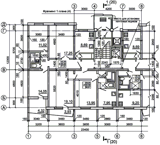 На рисунках Б.1, Б.2 представлены примеры выполнения планов зданий.