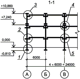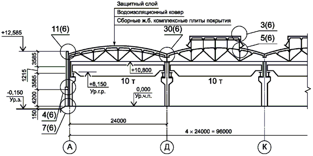Рисунок Г.1 - Пример выполнения разреза одноэтажного производственного здания