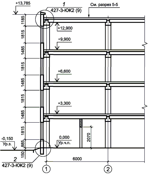 Рисунок Г.2 - Пример выполнения разреза многоэтажного производственного здания