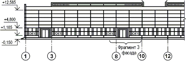 Рисунок Д.1 - Пример выполнения фасада и фрагмента фасада производственного здания