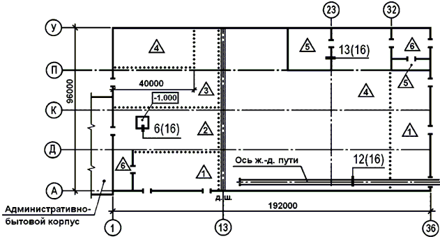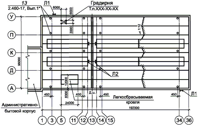 Рисунок Б.1 - Пример выполнения плана одноэтажного производственного здания