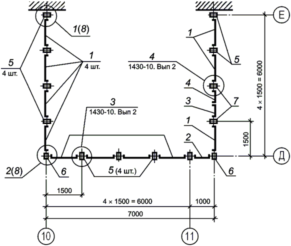 <*> Схемы расположения металлических элементов сборных перегородок и заполнения оконных проемов выполняют в составе рабочих чертежей металлических конструкций. Схемы расположения элементов сборных железобетонных перегородок выполняют, как правило, в составе основного комплекта рабочих чертежей железобетонных конструкций.