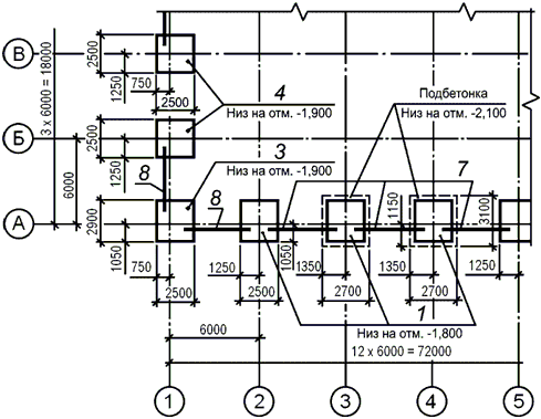 Рисунок Л.1 - Схема расположения элементов фундаментов и фундаментных балок