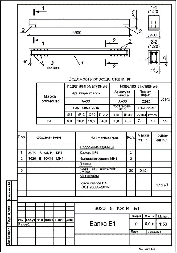 ПРИМЕР ВЫПОЛНЕНИЯ ЧЕРТЕЖА ЖЕЛЕЗОБЕТОННОГО ИЗДЕЛИЯ