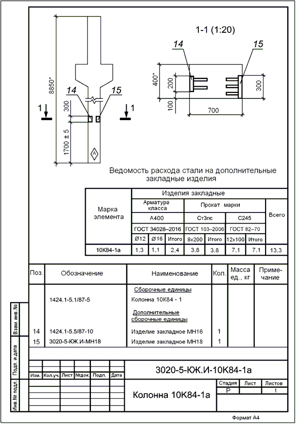 ПРИМЕР ВЫПОЛНЕНИЯ ЧЕРТЕЖА ТИПОВОГО ИЗДЕЛИЯ С ДОПОЛНИТЕЛЬНЫМИ ЗАКЛАДНЫМИ ИЗДЕЛИЯМИ