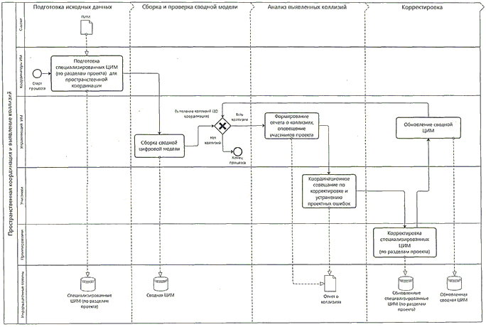 Б.2 Пример карты процесса реализации задачи применения информационного моделирования "Пространственная междисциплинарная координация и выявление коллизий" приведен на рисунке Б.2.